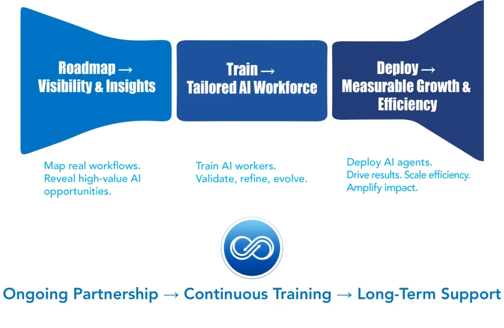 At C1M.ai, we don’t just implement AI tools — we architect blended workforces. As Workforce Architects, our role is to help your people and AI agents work seamlessly together. Using our signature methodology, CARTA™ (Capture and Reflect Team Activity), we map how work really happens inside your business and design agentic AI workers that amplify, not replace, human expertise.